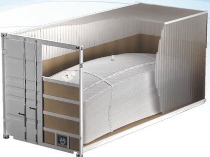高容量:16— 24 立方米的容量,同樣的集裝箱內使用液袋比桶裝罐裝等傳統包裝形式高出35%的容積。